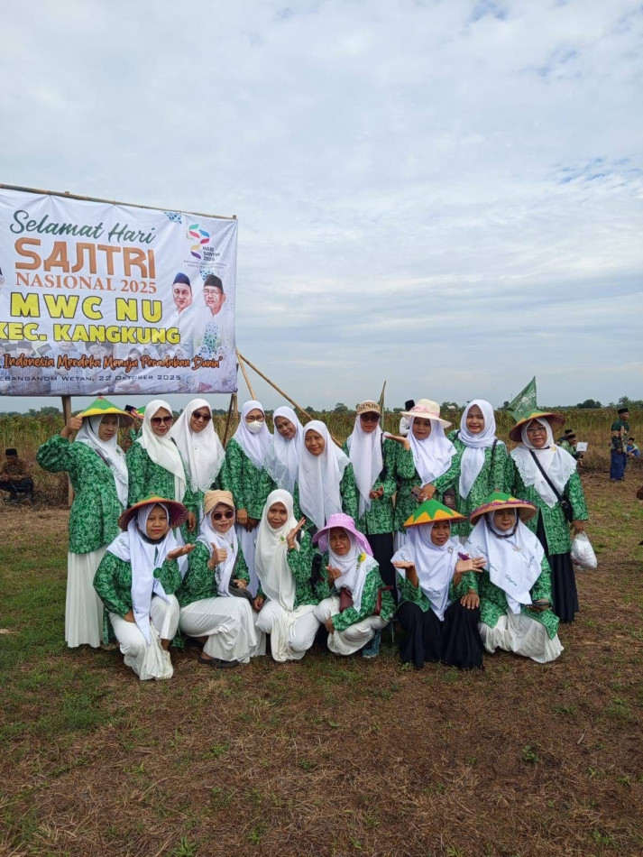 “Santri sekarang tidak hanya kenal kitab kuning, tetapi juga menguasai teknologi. Jadilah santri yang berilmu, berakhlak, dan berdaya,” ucap Ketua MWC NU Kangkung membacakan amanat Menteri Agama.