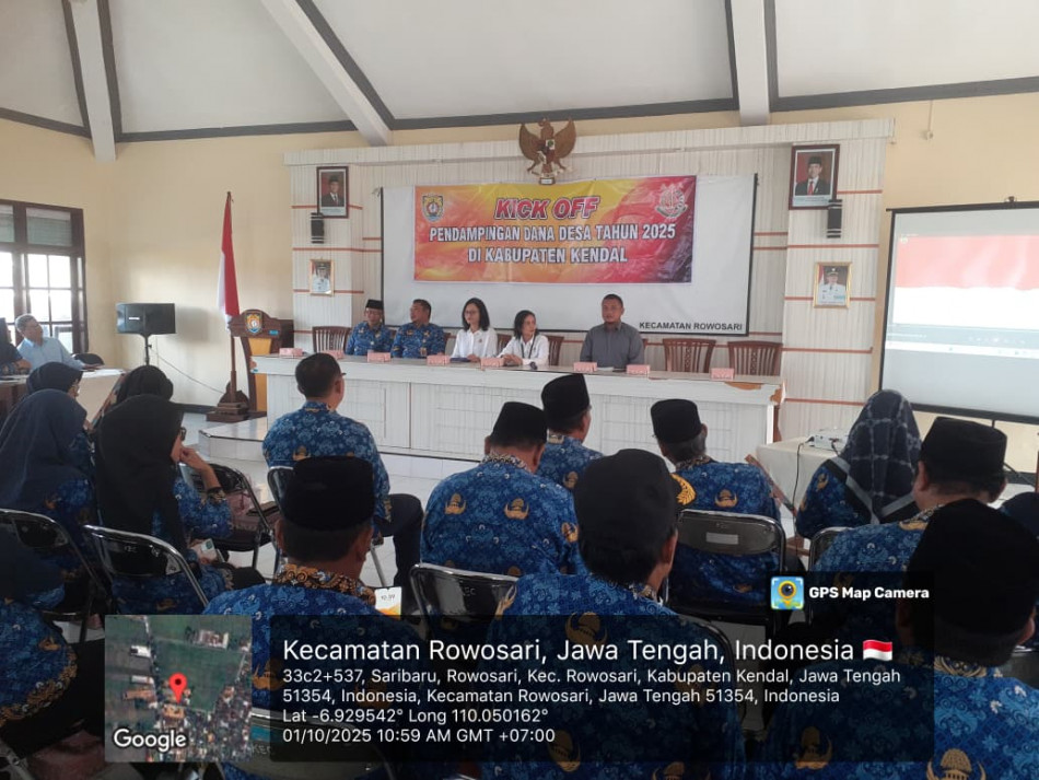 Dalam rangka mendorong terwujudnya tertib administrasi keuangan dan aset desa, Pemerintah Kabupaten Kendal menggelar Kick Off Pendampingan Dana Desa Tahun 2025, pada Rabu (1/10/2025) bertempat di Aula Kecamatan Rowosari. Kegiatan ini diikuti oleh Kepala Desa (Kades) dan Sekretaris Desa (Sekdes) dari tiga kecamatan, yaitu Rowosari, Kangkung, dan Cepiring.